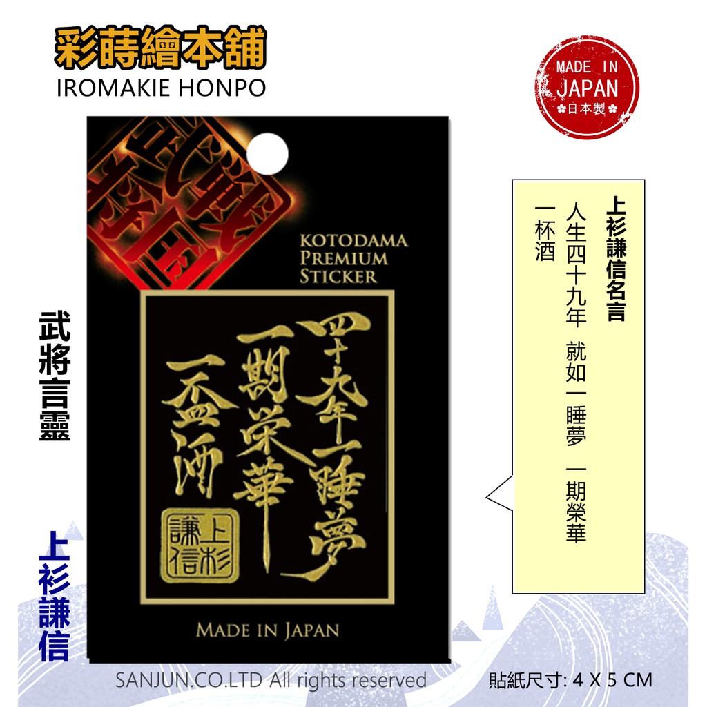 上杉謙信 日本製 彩蒔繪貼 戰國言靈系列 蝦皮購物